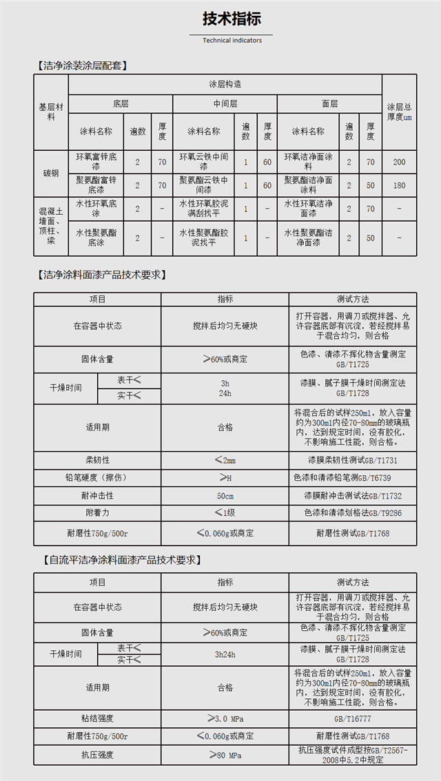 水泥砂漿、混凝土、木材等基層宜選用環(huán)保型水性聚氨酯潔凈涂料、水性環(huán)氧潔凈涂料、無溶劑環(huán)氧潔凈涂料