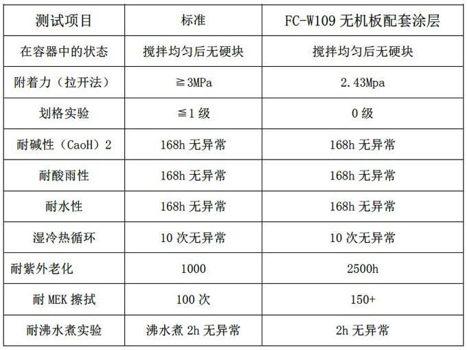 實驗結(jié)論:FC-W109無機板配套涂層通過耐水煮測試